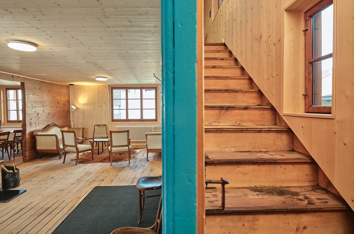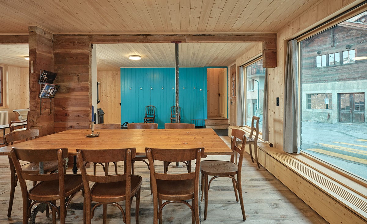 Der Alte Konsum von 1941/42 hat seine Türen wieder geöffnet. Als Ferienhaus bietet es für bis zu 14 Personen Platz. Das sorgfältig restaurierte Baudenkmal vereint authentischen Charme mit moderner Technik. Zur Ausstattung gehören eine grosszügige Küche, ein feiner SPA-Bereich, eine Werkstatt für die Sportgeräte, ein Abduschplatz für Bike und Hund und zwei Parkplätze. Und dies alles mitten im Dorf.
